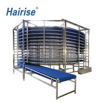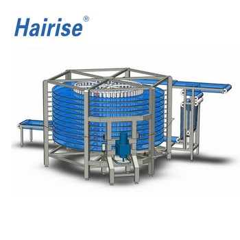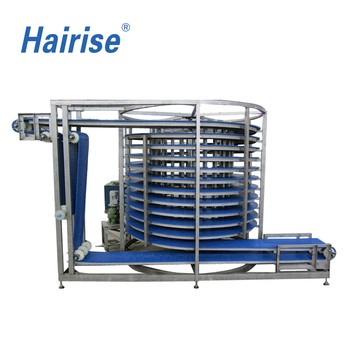 The Hairise Spiral Conveyor is a vertical conveying system designed to transport products smoothly between different height levels while minimizing floor space. Using a continuous spiral belt or modular chain structure, the spiral conveyor enables efficient vertical accumulation, cooling, buffering, and transfer in automated production lines.
