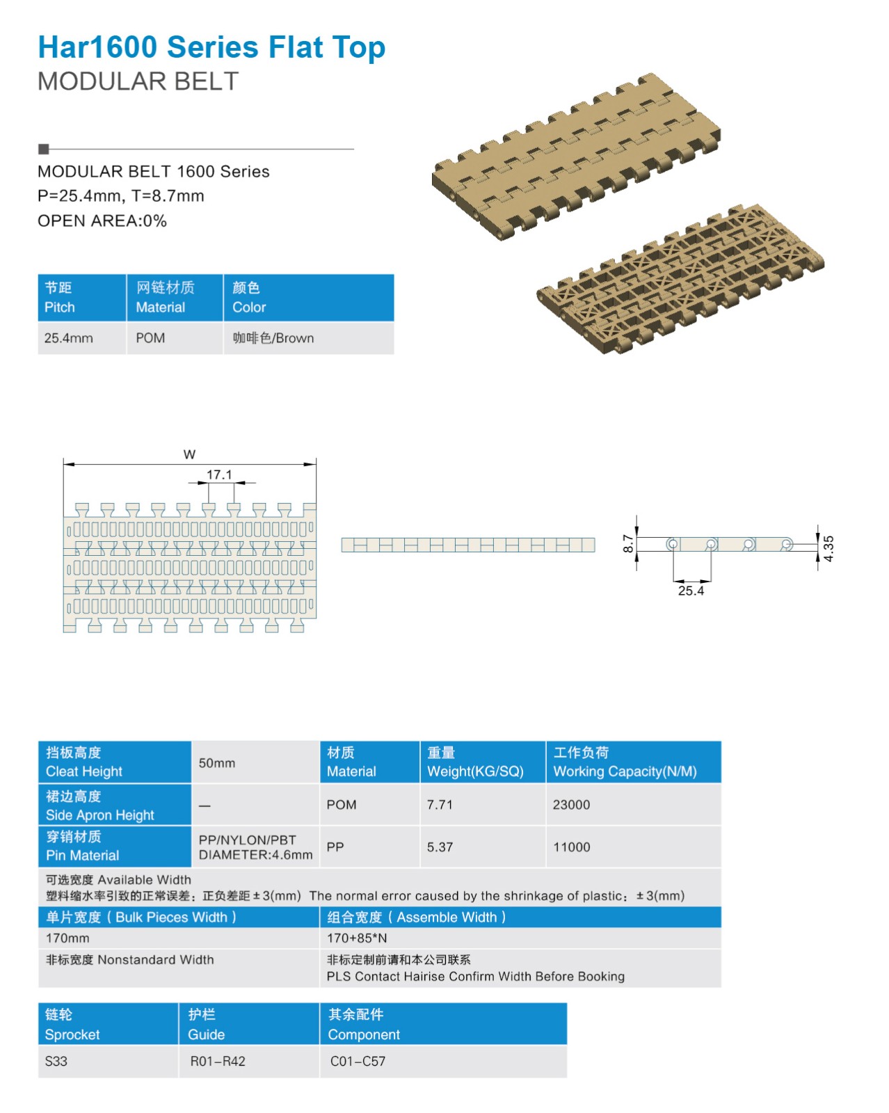 Har1600 Flat Top Plastic Modular Belt for Conveyor-Hairisebelt,Hairise conveyor, modular belt manufacturer,Hairise flexible chain