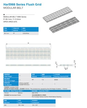 Har5966 Series Flush Grid Plastic Modular Conveyor Belt-Hairisebelt,Hairise conveyor, modular belt manufacturer,Hairise flexible chain