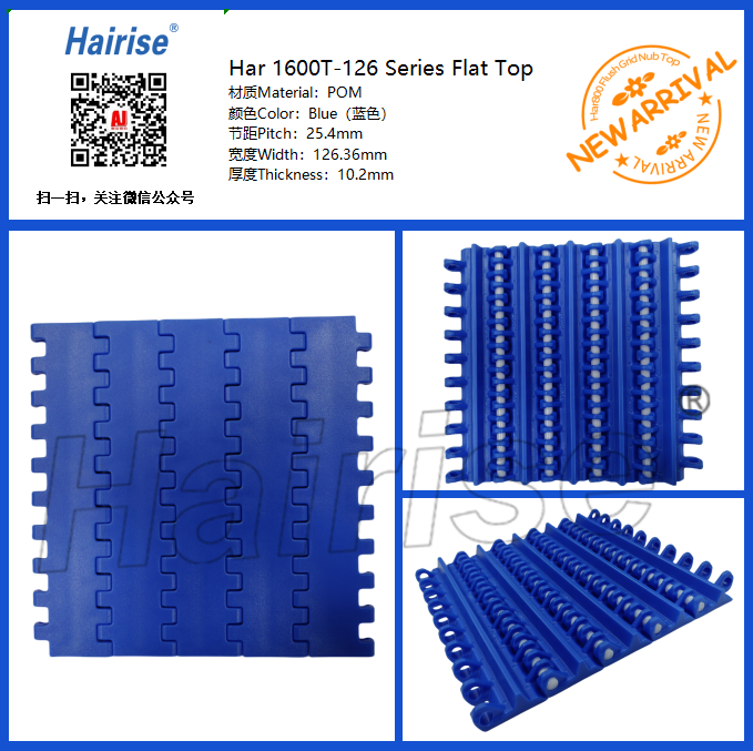 •Flat Top Belt has a smooth surface without holes (used to transport general products).