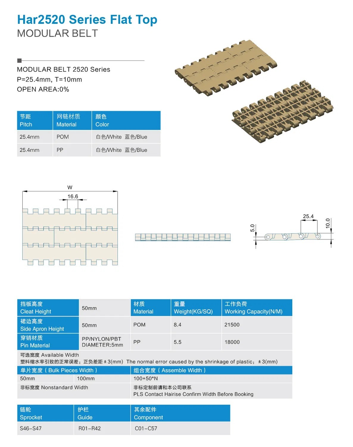 •Flat Top Belt has a smooth surface without holes (used to transport general products).