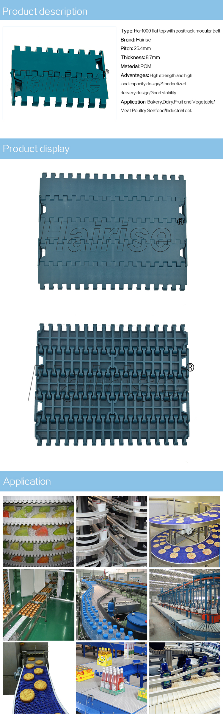 Har1000 series flat top with positrack modular belt-Hairisebelt,Hairise conveyor, modular belt manufacturer,Hairise flexible chain