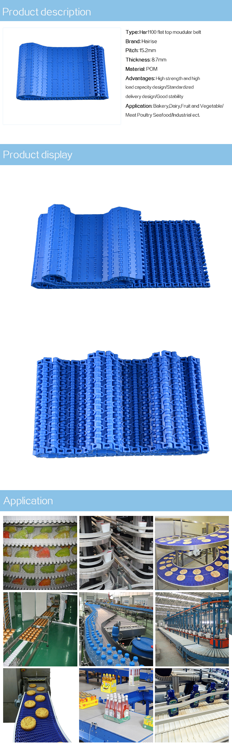 Har1100 series flat top modular belt-Hairisebelt,Hairise conveyor, modular belt manufacturer,Hairise flexible chain