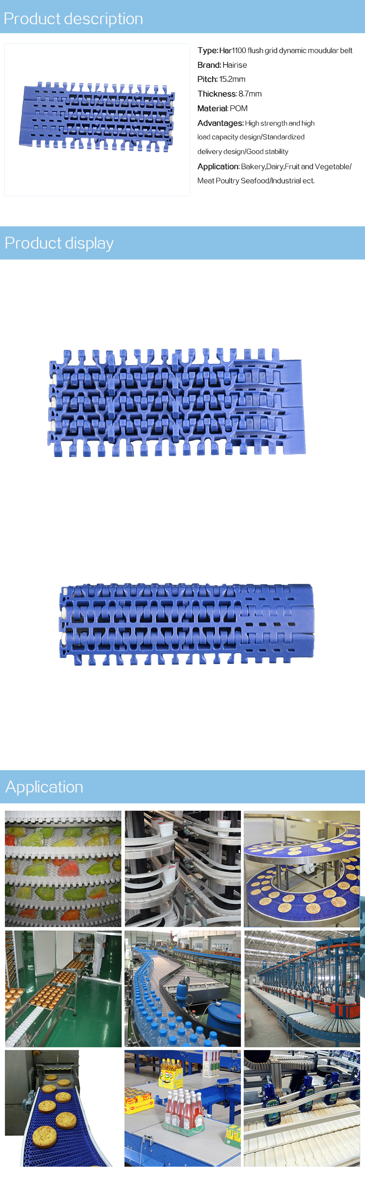 Har1100 series flush grid dynamic transiton modular belt-Hairisebelt,Hairise conveyor, modular belt manufacturer,Hairise flexible chain