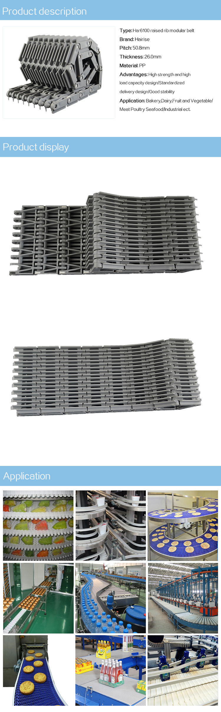 Har6100 series raised rib modular belt-Hairisebelt,Hairise conveyor, modular belt manufacturer,Hairise flexible chain
