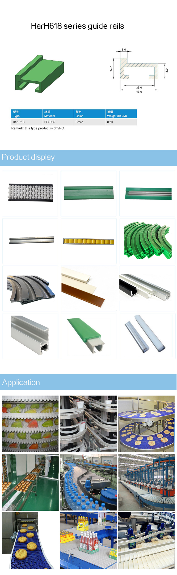 Aluminium plastic chain side guide rail for conveyor and package machine