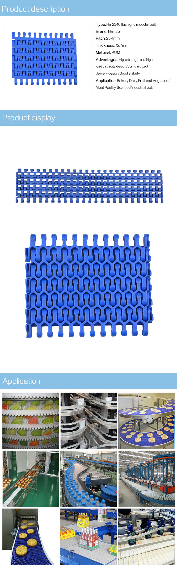 节距:25.4mm 厚度:12.7mm 链板材料:POM 开孔率:40% 优点: 高强度及高载重量的设计;标准化的输送设计;良好的稳定性