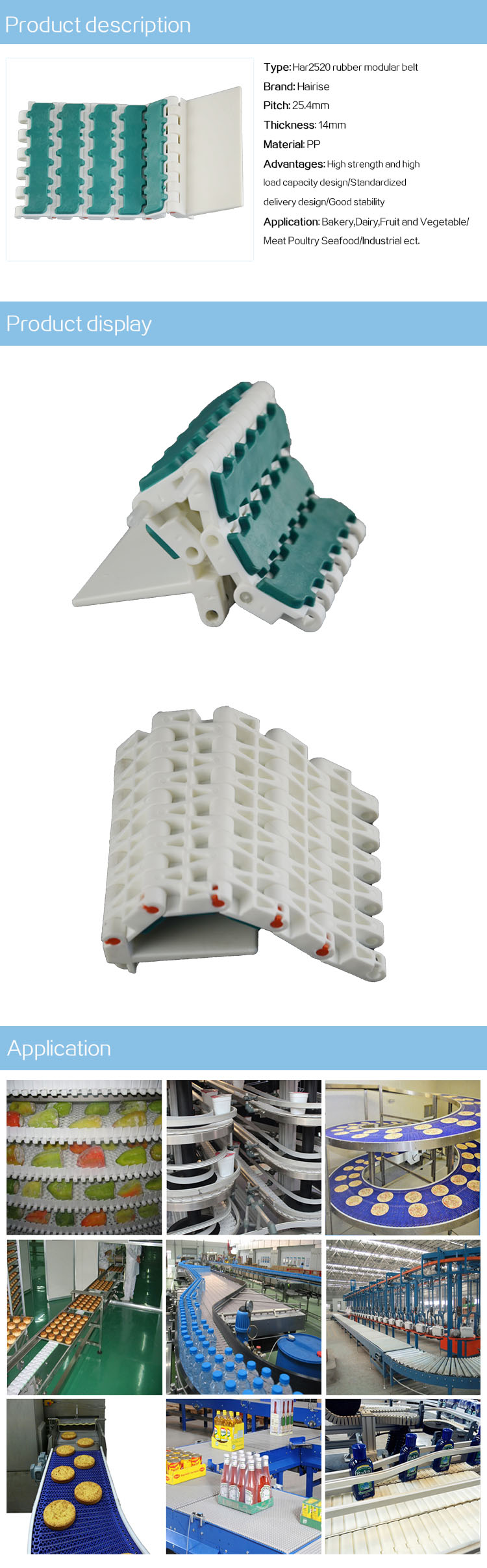 输送带材质一般有聚甲醛(POM)、聚丙烯(PP),结构形式有水平直线输送、水平转弯输送、提升爬坡输送等形式,网带可增设提升档板、侧裙边。
