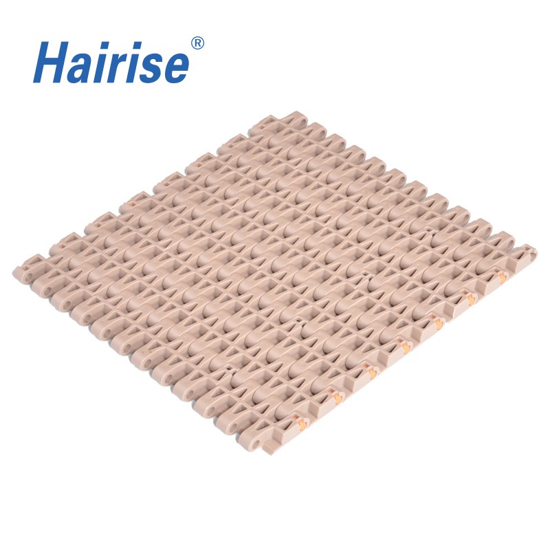 输送带材质一般有聚甲醛(POM)、聚丙烯(PP),结构形式有水平直线输送、水平转弯输送、提升爬坡输送等形式,网带可增设提升档板、侧裙边。