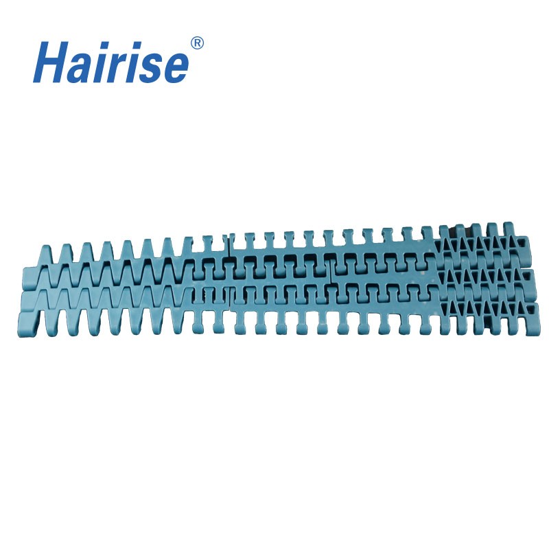 输送带材质一般有聚甲醛(POM)、聚丙烯(PP),结构形式有水平直线输送、水平转弯输送、提升爬坡输送等形式,网带可增设提升档板、侧裙边。