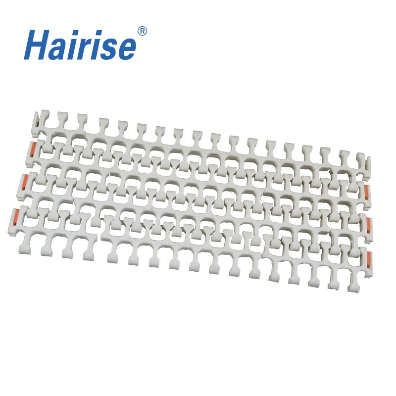 输送带材质一般有聚甲醛(POM)、聚丙烯(PP),结构形式有水平直线输送、水平转弯输送、提升爬坡输送等形式,网带可增设提升档板、侧裙边。