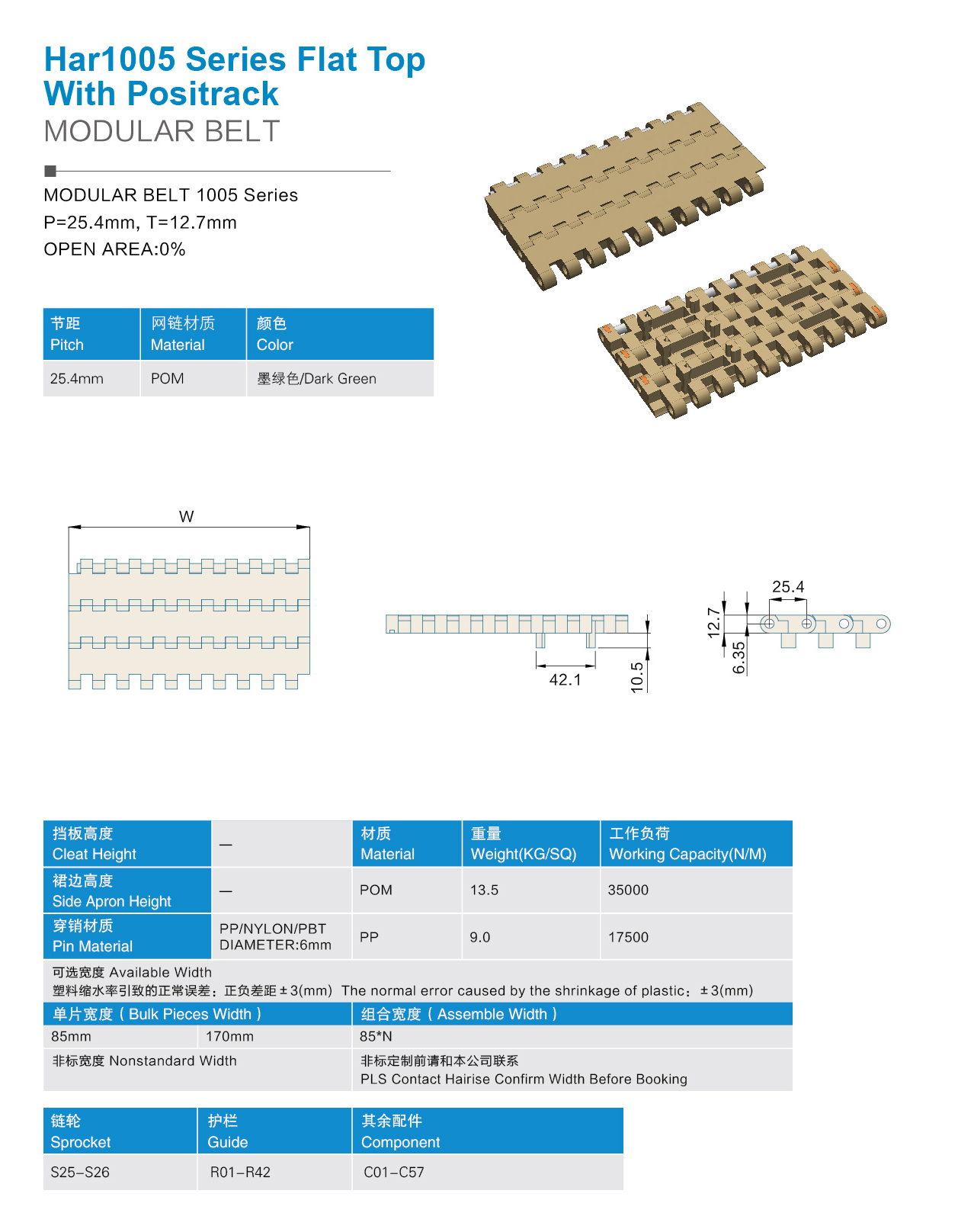 Плоский верх серии Har1005 с модульным ремнем positrack