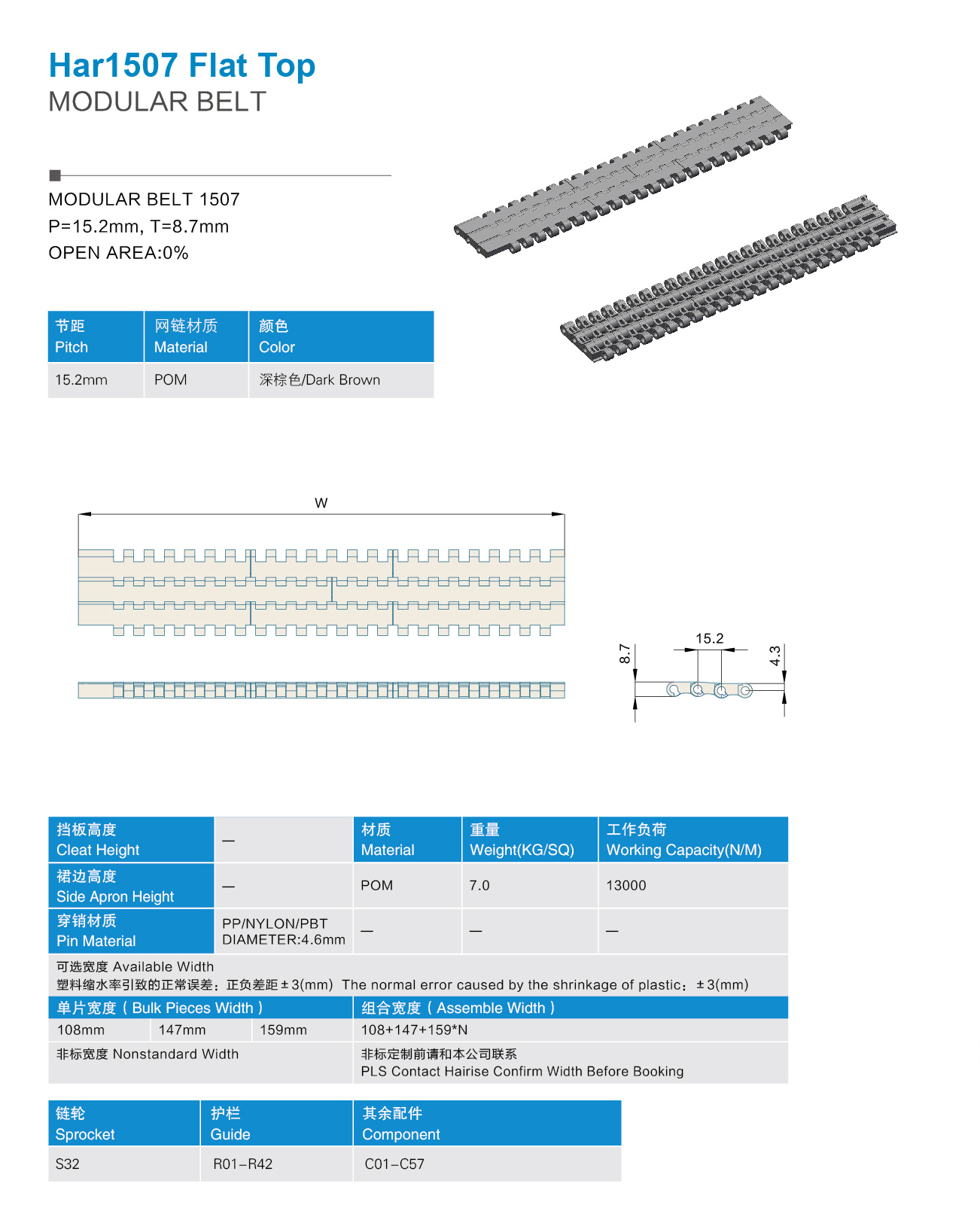 Модульный ремень с плоским верхом серии har1507-Mu Jia Automation Technology (Shanghai) Company Limited